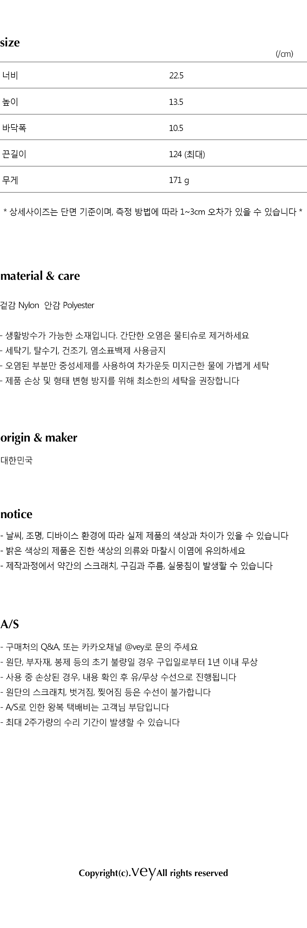 - 제품 사이즈는 측정 방법에 따라 1~3cm의 오차가 있을 수 있습니다.