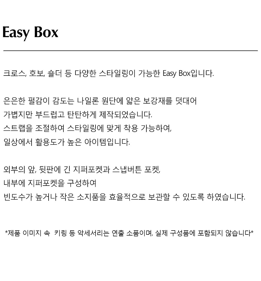 크로스, 호보, 숄더 등 다양한 스타일링이 가능한 Easy Box입니다.
