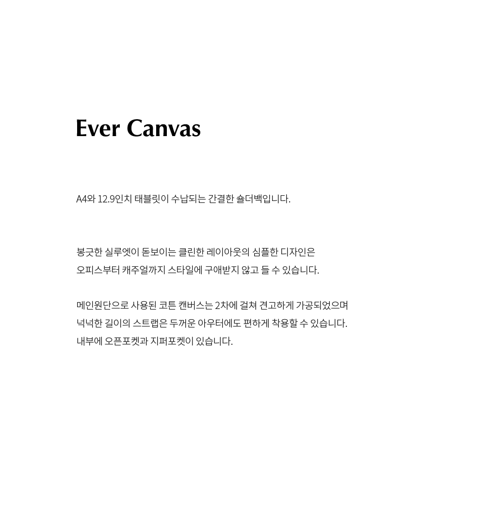 A4와 13인치 랩탑이 수납되는 간결한 숄더백입니다.